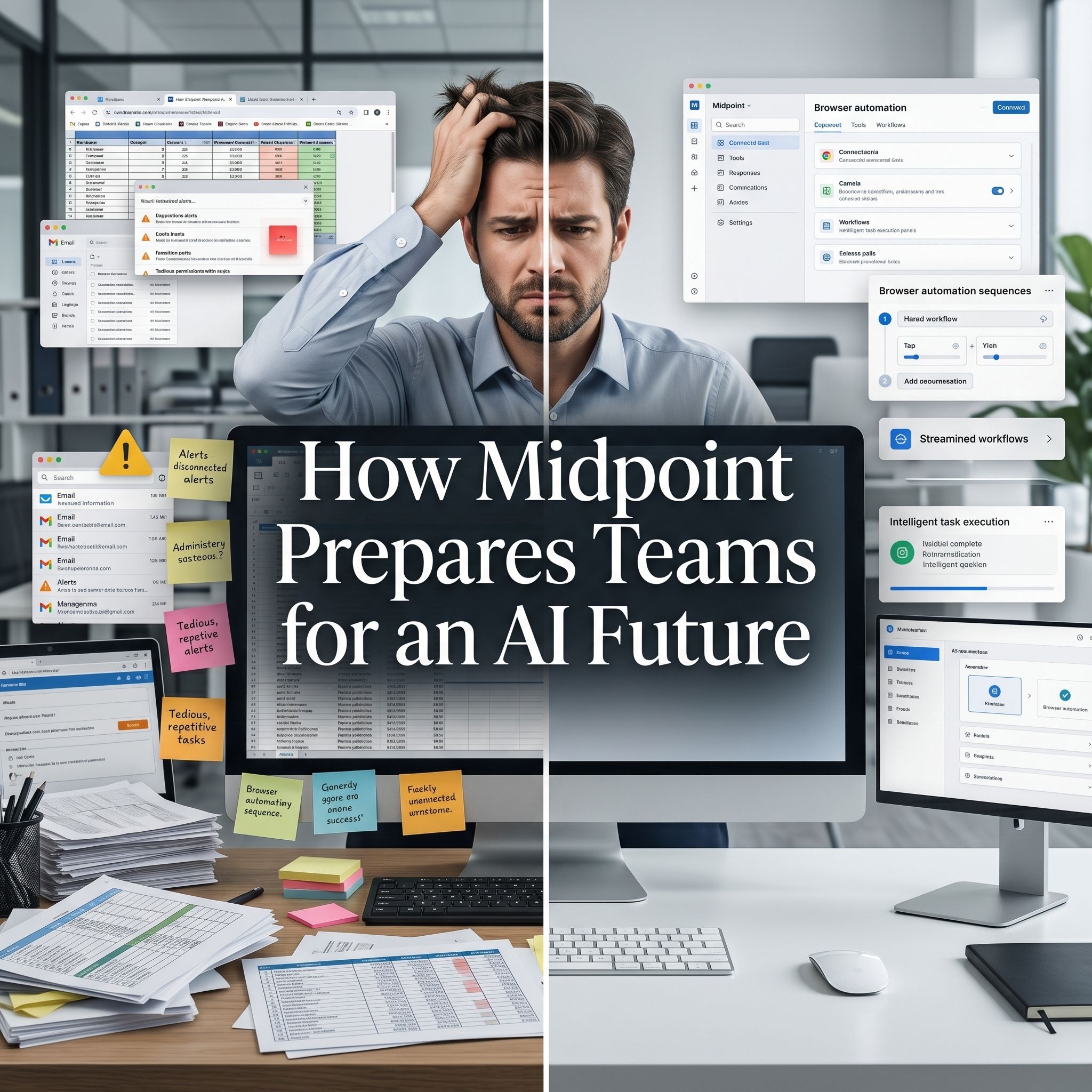 The result is not just efficiency, it is career durability. People who know how to work alongside AI become more valuable because they can do more, oversee more, and improve more. They are no longer stuck spending their day buried in operational glue work. They can focus on judgment, prioritization, exception handling, and higher-level decision making. In other words, Midpoint does not prepare users for an AI future by teaching them a trend. It prepares them by changing how they work. It helps them build the habits and operating instincts that matter even as the models, interfaces, and vendors continue to change.